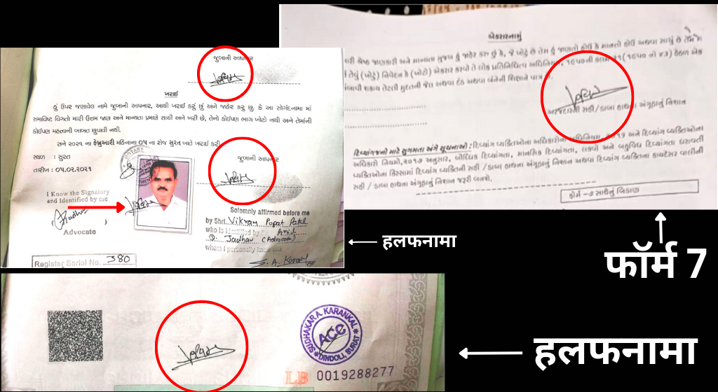 भाजपा कारपोरेटर ने भले ही ‘ऐसा कुछ भी नहीं है’ बोलकर आरोपों से इनकार किया, लेकिन फॉर्म 7 पर किया गया हस्ताक्षर, उनके द्वारा चुनावी हलफनामे पर किए गए हस्ताक्षर से मेल खाता है. यह हलफनामा उन्होंने साल 2021 में सूरत नगर निगम चुनाव के दौरान भरा था.